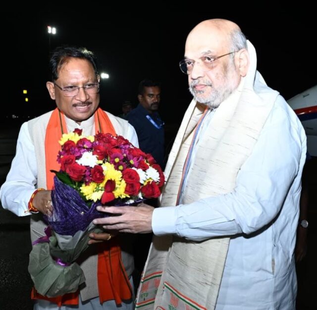 केंद्रीय गृह मंत्री श्री अमित शाह का मुख्यमंत्री श्री विष्णुदेव साय ने स्वामी विवेकानंद विमानतल पर किया आत्मीय स्वागत