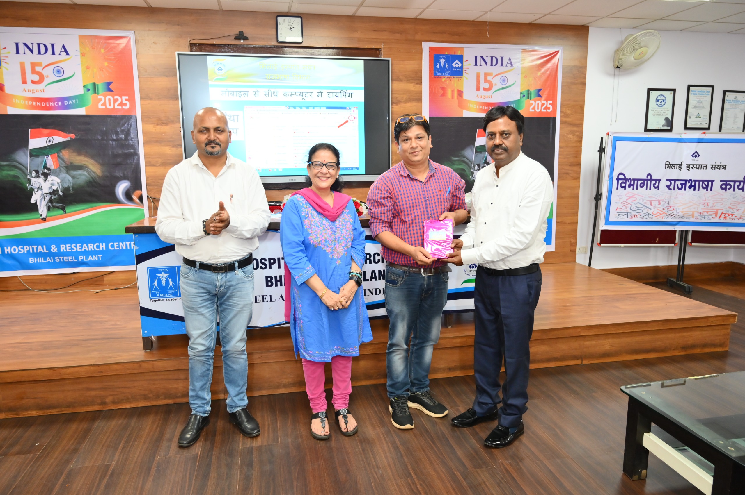 भिलाई इस्पात संयंत्र के चिकित्सा एवं स्वास्थ्य सेवाएँ विभाग के अंतर्गत संचालित जवाहर लाल नेहरु चिकित्सालय एवं अनुसन्धान केंद्र, सेक्टर–9 में 10 सितम्बर 2025 को एक दिवसीय राजभाषा कार्यशाला का आयोजन कार्यपालक निदेशक (चिकित्सा एवं स्वास्थ्य सेवाएँ) डॉ. रविन्द्रनाथ एम. के मुख्य आतिथ्य में संपन्न हुआ। कार्यक्रम की अध्यक्षता मुख्य चिकित्सा अधिकारी (चिकित्सा एवं स्वास्थ्य सेवाएँ) डॉ. विनीता द्विवेदी ने की। इस अवसर पर मुख्य चिकित्सा अधिकारी (चिकित्सा एवं स्वास्थ्य सेवाएँ) डॉ. उदय कुमार, महाप्रबंधक (संपर्क व प्रशासन, जनसंपर्क एवं प्रभारी राजभाषा) श्री राजीव कुमार विशेष रूप से मंचासीन थे।