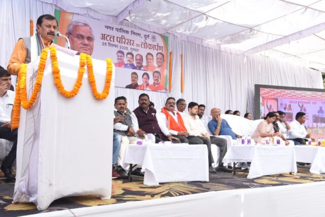 उल्लेखनीय है कि इस अवसर पर प्रदेश के 115 शहरों में नवनिर्मित अटल परिसरों का लोकार्पण मुख्यमंत्री विष्णु देव साय द्वारा वर्चुअल माध्यम से किया गया। दुर्ग में आयोजित कार्यक्रम का शुभारंभ भारत माता, छत्तीसगढ़ महतारी एवं श्रद्धेय अटल बिहारी वाजपेयी जी के तैलचित्र पर माल्यार्पण के साथ हुआ। सौंदर्यीकरण के तहत विकसित यह अटल परिसर चौक अब शहर की पहचान का नया केंद्र बनेगा।