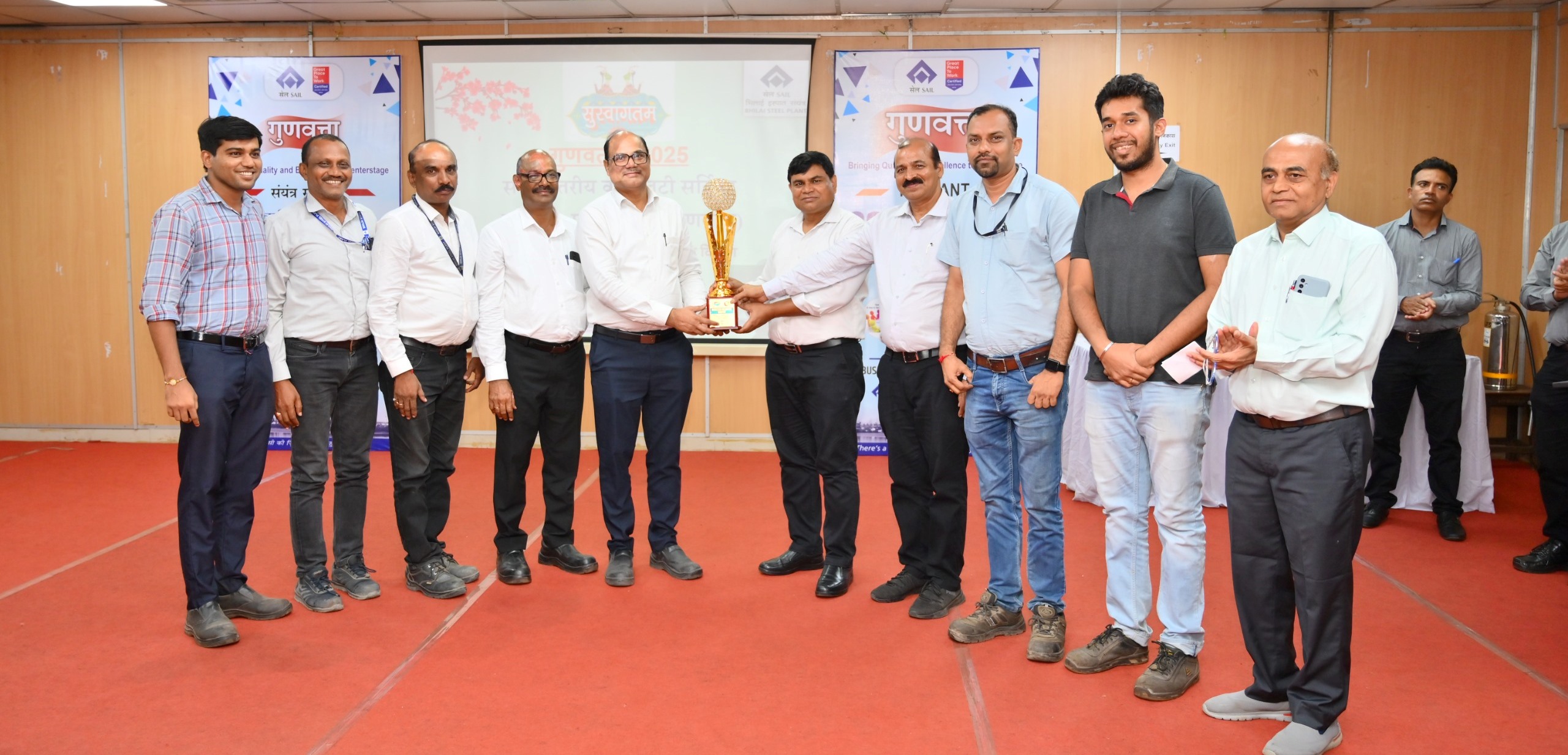 सेल-भिलाई इस्पात संयंत्र के व्यवसायिक उत्कृष्टता विभाग (बी.ई.) द्वारा मानव संसाधन विकास केन्द्र में 29 से 31 जुलाई 2025 तक ‘गुणवत्ता-2025’ संयंत्र स्तरीय क्वालिटी सर्कल प्रतियोगिता का आयोजन किया गया। इस प्रतियोगिता में संयंत्र के कर्मचारियों एवं अधिकारियों द्वारा कार्यक्षेत्र में किए गए सृजनात्मक कार्यों की प्रस्तुति दी जाती है।