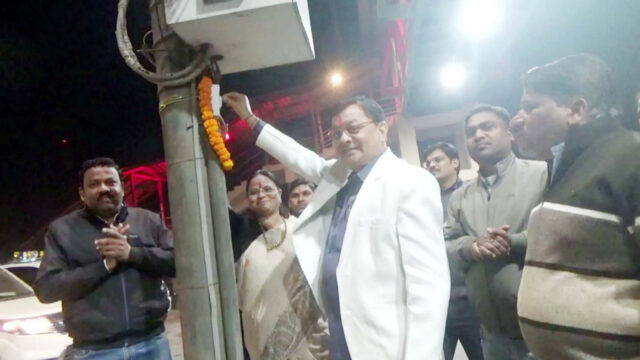 बुधवारी फुट ओव्हरब्रिज में प्रकाश व्यवस्था का लोकार्पण किया उद्योग मंत्री व महापौर ने
