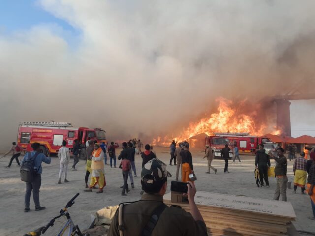 प्रयागराज के महाकुंभ मेला क्षेत्र में सेक्टर-19 स्थित शिविर में भीषण आग लग गई। आग शास्त्री पुल और रेलवे पुल के बीच इलाके में लगी, जो मेला क्षेत्र में आता है। बताया जा रहा है कि खाना बनाने के दौरान सिलेंडर में ब्लास्ट हुआ, जिससे आग तेजी से फैल गई। देखते ही देखते 20-25 टेंट जलकर खाक हो गए।दमकल की छह गाड़ियां आग बुझाने में जुटी हैं, लेकिन सिलेंडर ब्लास्ट होने से आग विकराल रूप ले रही थी। आग की चपेट में आने से मेला क्षेत्र में अफरा-तफरी मच गई। घटनास्थल पर पुलिस, एनडीआरएफ और प्रशासन के अधिकारी पहुंच गए हैं। लोगों को सुरक्षित स्थानों पर भेजा जा रहा है।