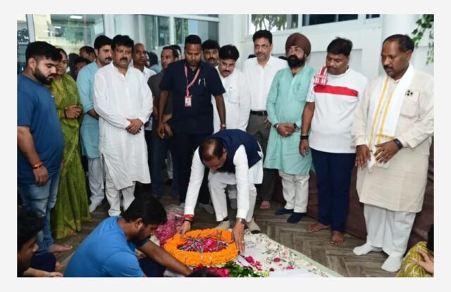 Raipur 23 जुलाई 2025/ मुख्यमंत्री श्री विष्णु देव साय ने आज राजधानी रायपुर स्थित विधायक कॉलोनी में आयोजित शोक सभा में शामिल होकर वन मंत्री श्री केदार कश्यप के भतीजे एवं बस्तर के पूर्व सांसद श्री दिनेश कश्यप के सुपुत्र स्वर्गीय श्री निखिल कश्यप को श्रद्धांजलि अर्पित की। मुख्यमंत्री ने स्व. निखिल कश्यप की पार्थिव देह पर पुष्पांजलि अर्पित कर उन्हें अंतिम विदाई दी तथा शोकाकुल परिजनों से भेंट कर गहरी संवेदना प्रकट की।