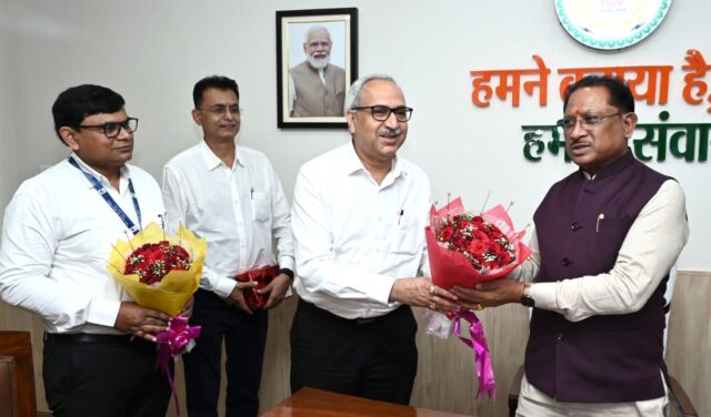 रायपुर 6 अगस्त 2025/ मुख्यमंत्री श्री विष्णु देव साय से आज राजधानी रायपुर स्थित मुख्यमंत्री निवास कार्यालय में भिलाई स्टील प्लांट के नवनियुक्त निदेशक श्री चित्त रंजन महापात्र ने सौजन्य मुलाकात की।