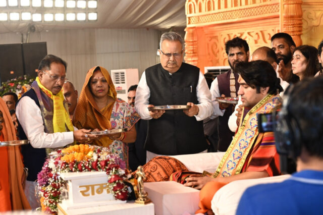 मुख्यमंत्री श्री विष्णुदेव साय जयंती स्टेडियम मैदान भिलाई में आयोजित 5 दिवसीय दिव्य श्री हनुमंत कथा समारोह में आज सपत्निक सम्मिलित हुए। मुख्यमंत्री श्री साय ने कहा कि हम सभी के लिए बड़े सौभाग्य की बात है। पंडित श्री धीरेन्द्र कृष्ण शास्त्री महाराज जी का आशीर्वाद छत्तीसगढ़ को हमेशा मिलता रहा है। उन्होंने बताया कि प्रभु श्रीराम ने अपने वनवासकाल का अधिकांश समय छत्तीसगढ़ में बिताए है। छत्तीसगढ़ माता शबरी का भी यह जगह है। इस दौरान उन्होंने भक्त माता ने जूठे भोजन को खिलाई थी।