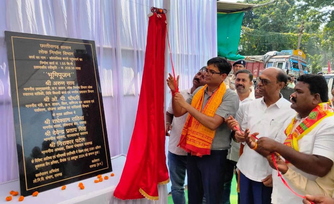 वित्त मंत्री श्री ओपी चौधरी ने 12 करोड़ 90 लाख रुपए के निर्माण कार्यों का भूमिपूजन किया। जिसमें 5 करोड़ 46 लाख रूपए से रायगढ़-लोईंग महापल्ली जामगांव मार्ग का निर्माण कार्य लम्बाई-8.60 कि.मी, 2 करोड़ 8 लाख की लागत से कोतरलिया बस्ती पहुंचमार्ग का निर्माण लंबाई 1.55 कि.मी., 1 करोड़ 83 लाख की लागत से बस्ती जामगांव-छुहीपाली-जूनाडीह मार्ग का निर्माण कार्य, लंबाई 2.40 कि.मी., 3 करोड़ 44 लाख की लागत से लोईंग महापल्ली में नवीन आई.टी.आई. भवन का निर्माण कार्य तथा बटमूल आश्रम कॉलेज में विधायक मद अंतर्गत स्वीकृत 7 लाख 67 हजार की लागत से अतिरिक्त कक्षों के निर्माण कार्य शामिल हैं।