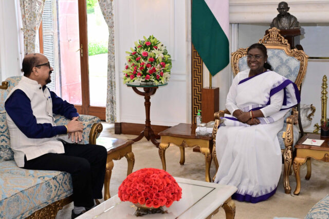 Home छत्तीसगढ़ राष्ट्रपति श्रीमती मुर्मु से राज्यपाल श्री डेका ने की सौजन्य भेंट छत्तीसगढ़रायपुर राष्ट्रपति श्रीमती मुर्मु से राज्यपाल श्री डेका ने की सौजन्य भेंट By AZADKALAM - July 8, 2025 27 0 FacebookTwitterPinterestWhatsApp Spread the loveराज्यपाल श्री रमेन डेका ने आज नई दिल्ली राष्ट्रपति भवन में राष्ट्रपति श्रीमती द्रौपदी मुर्मु से सौजन्य भेंट की। Spread the love