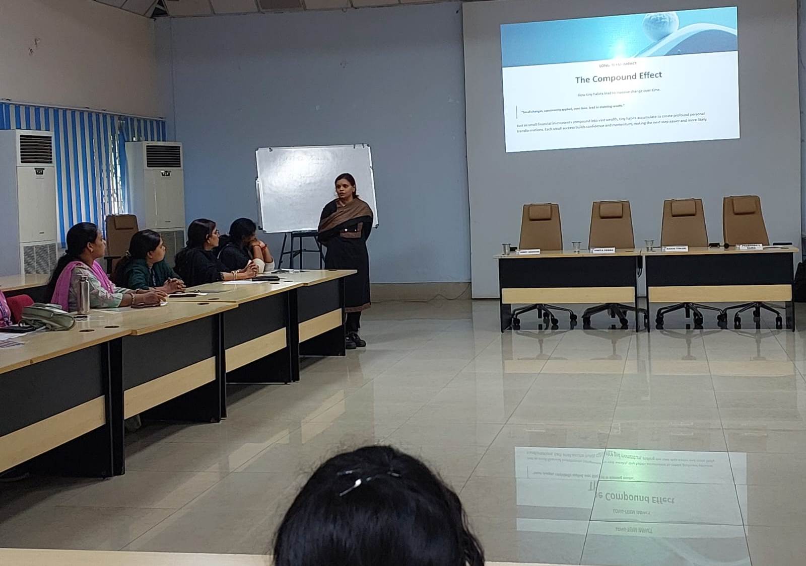 कार्यक्रम में आयोजित सत्रों की शुरुआत श्रीमती सिम्मी गोस्वामी द्वारा “स्टैंड टाल, स्पीक ट्रू – आत्म-जागरूकता की शक्ति” से हुई, इसके बाद सुश्री प्रभा ने “नेविगेटिंग चेंज– कार्य की माँगों और व्यक्तिगत जीवन के बीच संतुलन” विषय पर अपने विचार साझा किए। तीसरे सत्र में श्रीमती विनिता ने “द रिवोल्युनशरी पाथ टू बिग चेंज- छोटे-छोटे आदतों से बड़ा बदलाव” पर प्रेरक विचार प्रस्तुत किए, जबकि समापन सत्र में सुश्री राखी तिवारी ने “फ्रॉम पैसिव टू पॉवरफुल– आत्म-पक्षधरता और नेटवर्किंग की भूमिका” पर प्रतिभागियों का मार्गदर्शन किया।