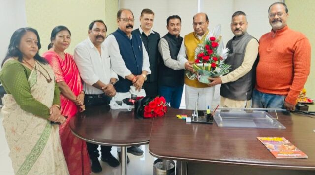 शशिकांत द्विवेदी को मार्कफेड अध्यक्ष बनने पर बधाई देने पहुंचे सहकारिता प्रकोष्ठ के पदाधिकारी