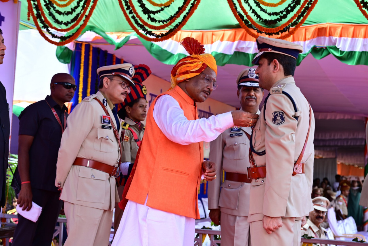 पुलिस परेड ग्राउंड में आयोजित स्वतंत्रता दिवस समारोह के मुख्य आयोजन में मुख्यमंत्री श्री विष्णुदेव साय ने 35 पुलिस अधिकारियों और जवानों को उत्कृष्ट सेवा के लिए पुलिस पदकों से सम्मानित किया। श्री साय ने पुलिस वीरता पदक से 11, राष्ट्रपति पुलिस पदक से 01, सराहनीय सेवा के लिए पुलिस पदक से 11, सुधार सेवा पदक से 05, गृहरक्षक एवं सराहनीय सेवा पदक 01 और राज्य स्तरीय एवं पुलिस महानिदेशक पदकों से 06 अधिकारी-कर्मचारियों को अलंकृत किया।