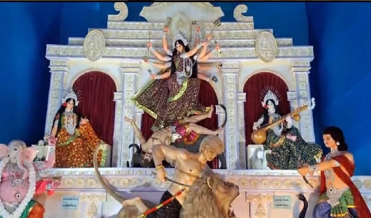 पश्चिम बंगाल के बहरामपुर स्थित खगरा श्मशान घाट दुर्गा पूजा समिति ने अपने दुर्गा पूजा समारोहों की अनूठी थीम के साथ व्यापक ध्यान आकर्षित किया है। इस वर्ष समिति ने अमेरिकी राष्ट्रपति डोनाल्ड ट्रंप की तर्ज पर एक राक्षस की मूर्ति का अनावरण किया है। समिति ने बताया कि ट्रंप के आकार का राक्षस, प्रधानमंत्री नरेंद्र मोदी द्वारा मैत्रीपूर्ण संबंध बनाए रखने के प्रयासों के बावजूद ट्रंप द्वारा कथित विश्वासघात का प्रतीक है। इस मूर्ति को कलाकार असीम पाल ने बनाया है। यह चित्रण व्यापार नीतियों पर शिकायतों को दर्शाता है, जिसमें भारत पर लगाए गए टैरिफ भी शामिल हैं, जिन्हें समिति देश के हितों के लिए हानिकारक मानती है।